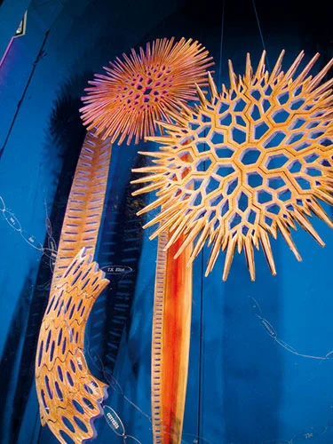 Word strings; inspired by marine algae the concept of the Perspex strings of words was to float texts that refer to the survival this delicate species.